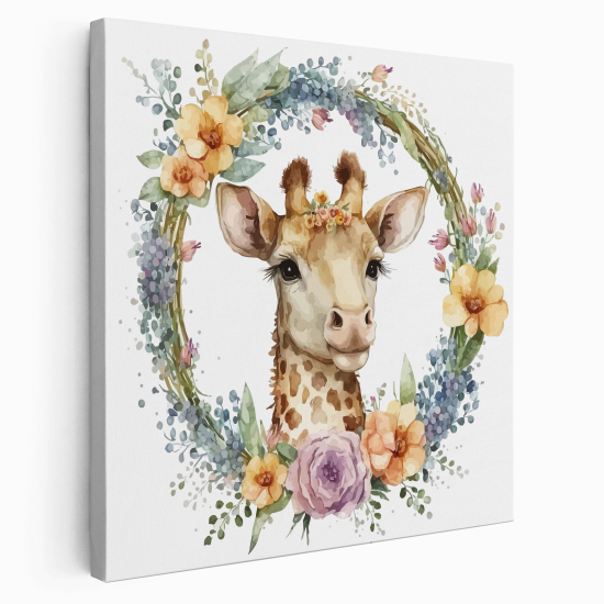 Lienzo cuadrado para niños - Infantil - Flamenco Rosa Flores