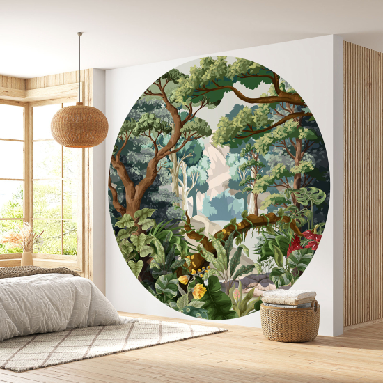 Papel pintado redondo para niños - Infantil - Animales de la Jungla