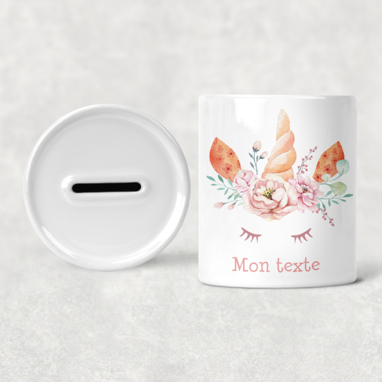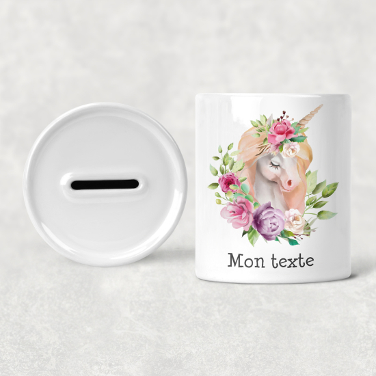 Hucha para niños personalizada - Infantil - Unicornio Flores