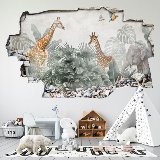 Vinilo Adhesivo trampantojo 3D - Animales de la Selva Tropical