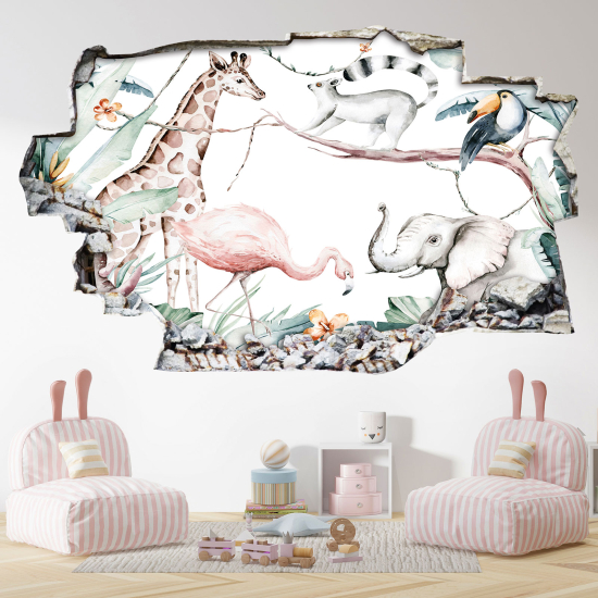 Vinilo Adhesivo trampantojo 3D - Animales de la Selva Tropical