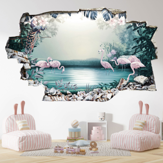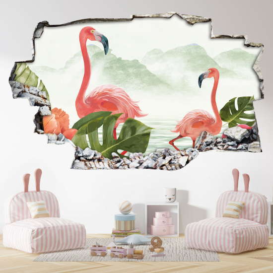 Vinilo Adhesivo trampantojo 3D - Flamencos Rosados