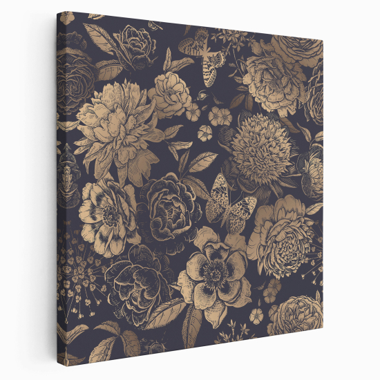 Lienzo cuadrado - Flores mariposas