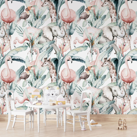 Papel pintado con motivos XL para niños - infantil - Flamencos Rosados
