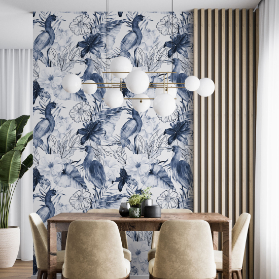 Papel pintado - Flores Pájaros