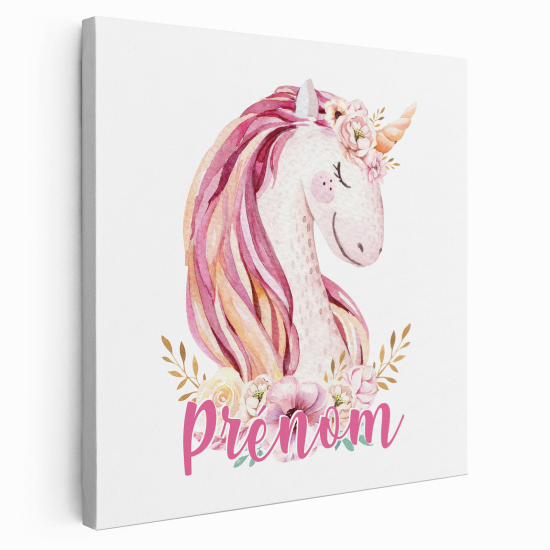 Lienzo personalizado para niños - Infantil - Unicornio Flores