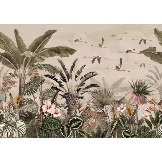 Papel pintado panorámico - Motivo Hojas Panteras negras