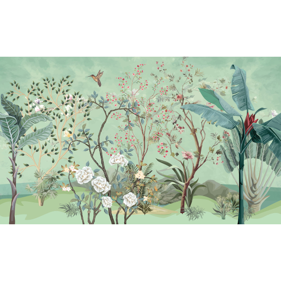 Papel pintado panorámico - Hojas Tropicales Pájaros