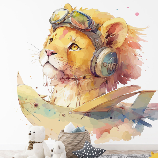 Papel pintado panorámico para niños - Infantil - Aviones Animales