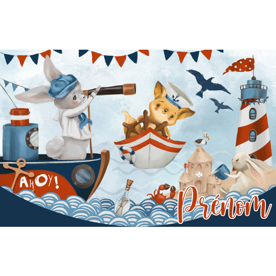 Papel pintado para niños - infantil panorámico con nombre personalizado - Animales Marinos