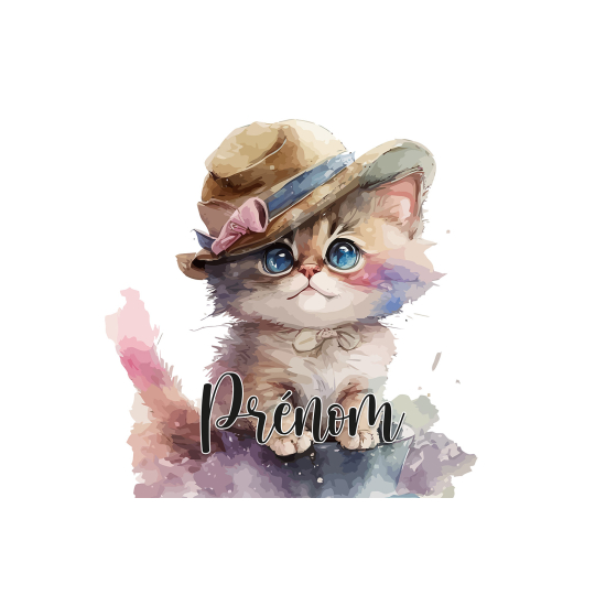 Papel pintado para niños - infantil panorámico con nombre personalizado - Gatito Sombrero