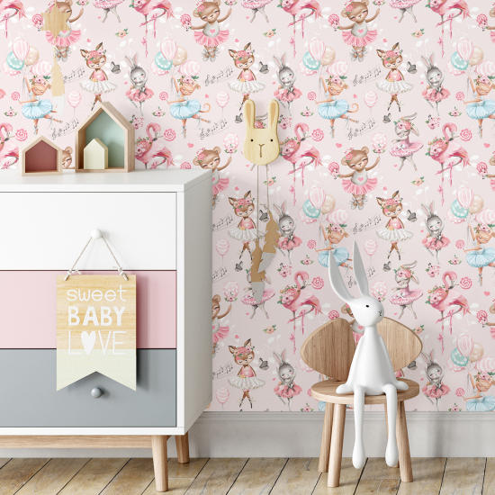 Papel pintado para niños - infantil - Bailarinas Flamencas Rosas