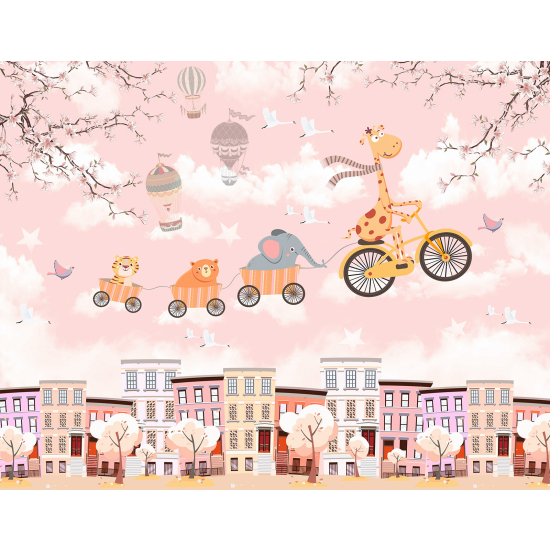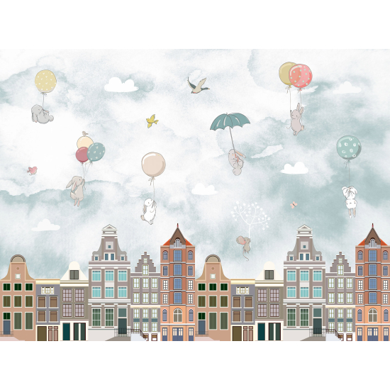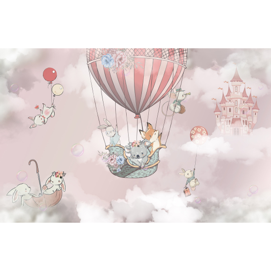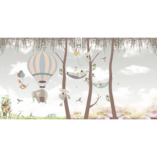 Papel pintado panorámico para niños - Infantil - Animales Globo Aerostático