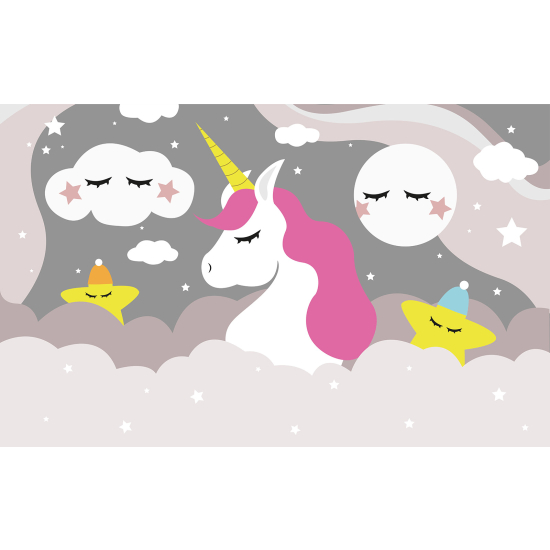 Papel pintado panorámico para niños - Infantil - Unicornio Estrellas