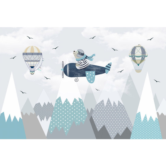Papel pintado panorámico para niños - Infantil - Ositos en Globos Aerostáticos