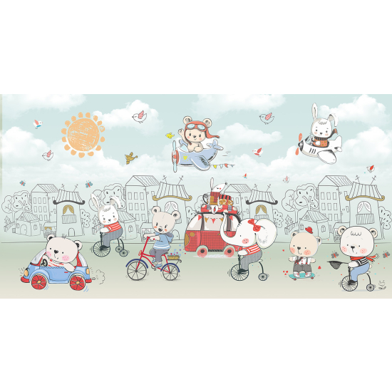 Papel pintado panorámico para niños - Infantil - Pueblo Animales