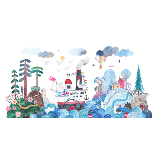 Papel pintado panorámico Infantil - Globos aerostáticos Animales