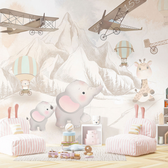 Papel pintado panorámico para niños - Infantil - Jirafa Montgolfiera