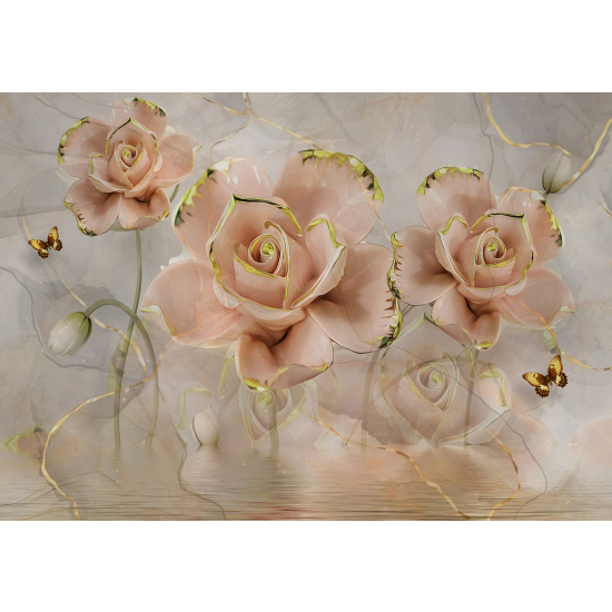 Papel pintado panorámico - Flores Capitoneadas 3D