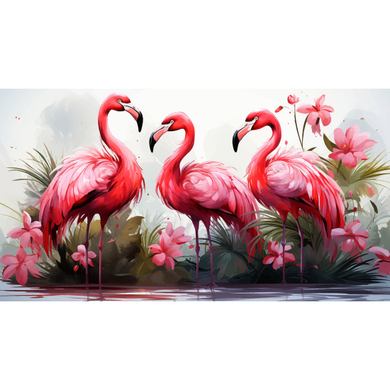 Papel pintado panorámico - Diseño de Flores y Pájaros