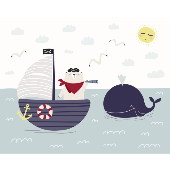 Papel pintado panorámico para niños - Infantil - Animales Piratas