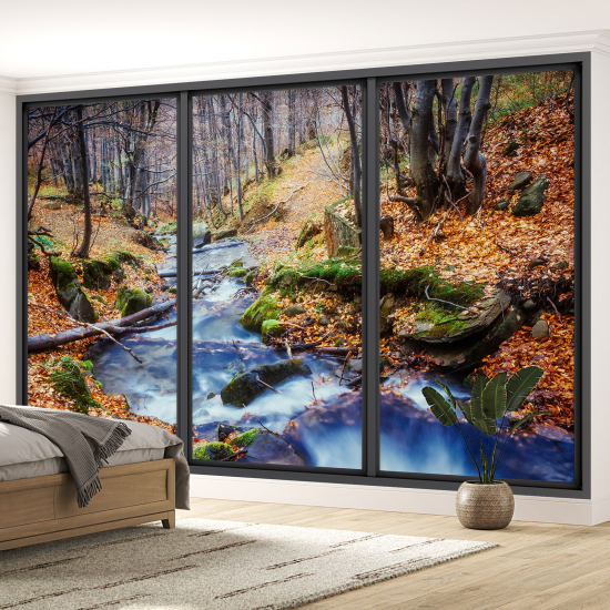 Papel pintado panorámico trampantojo - Bosque otoño