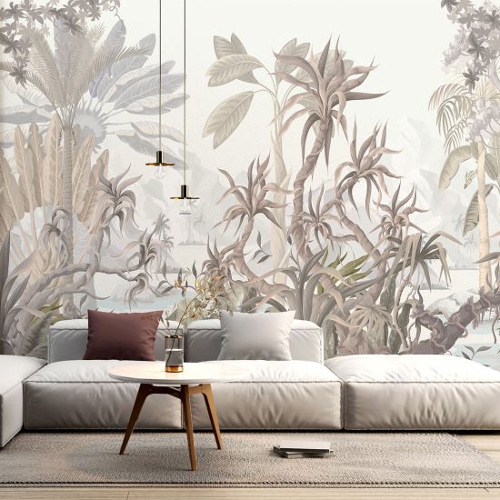 Papel pintado panorámico para niños - Infantil - Hojas tropicales Monos