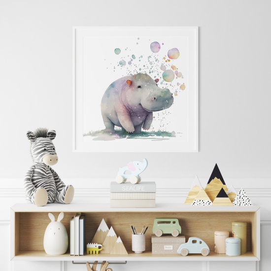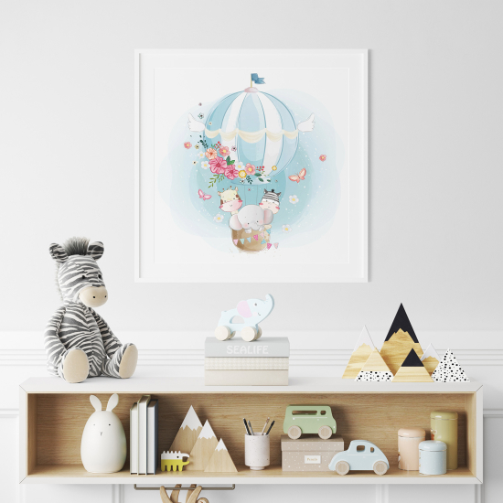 Póster para niños - Infantil - Globo aerostático Hipopótamo