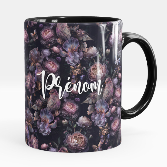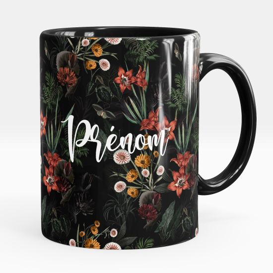 Taza personalizada totalmente negra - Cervatillo flores
