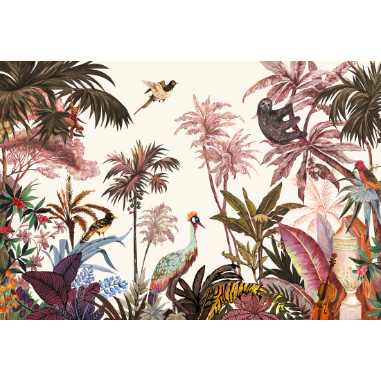 Papel pintado panorámico - Bosque Tropical Flores Pájaros