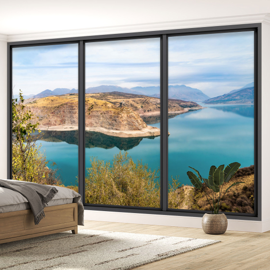 Papel pintado panorámico trampantojo - Vista al mar y montañas