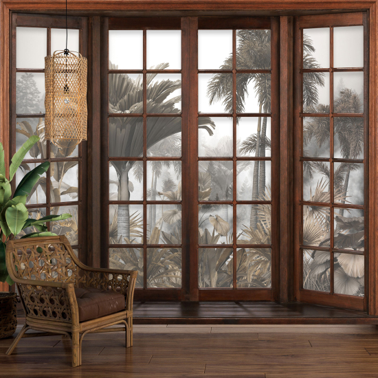 Papel pintado panorámico trampantojo - Plantas tropicales