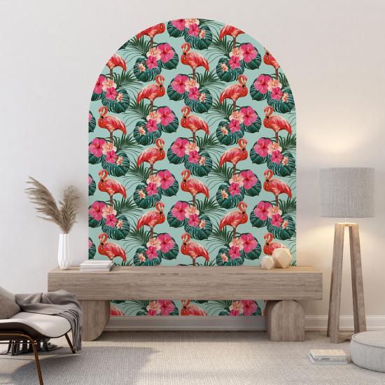 Vinilo Adhesivo Decorativo Arco - Flamencos rosas