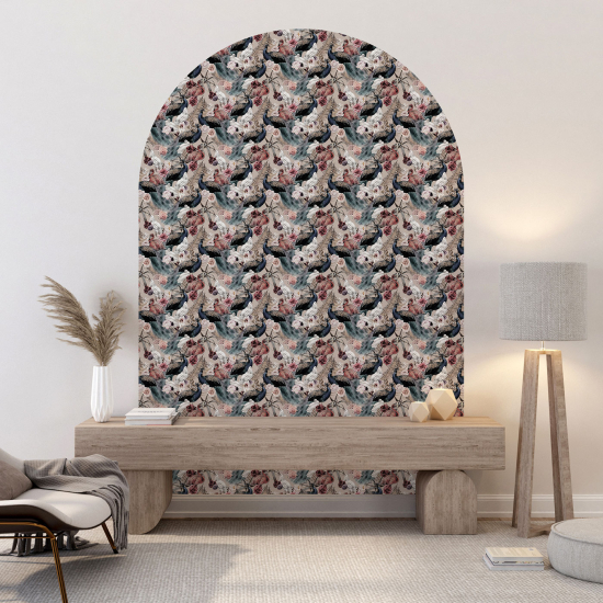 Vinilo Adhesivo Decorativo Arco - Flores Pájaros