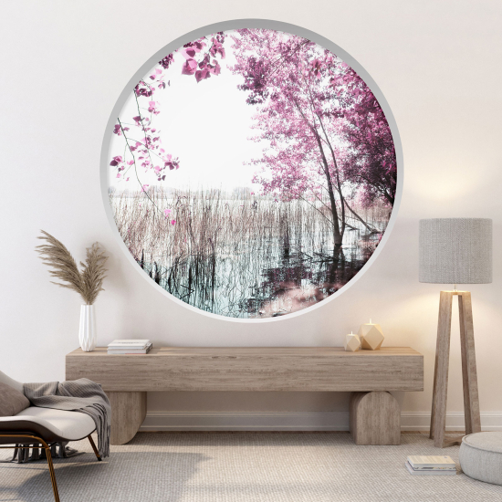 Vinilo Adhesivo Decorativo trampantojo 3D - Camino bosque florecido
