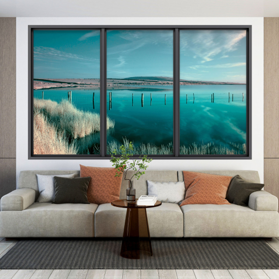 Vinilo Adhesivo Decorativo trampantojo 3D - Vista al mar puesta de sol