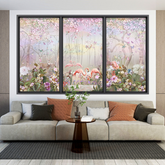Vinilo Adhesivo Decorativo trampantojo 3D - Flamencos Rosados