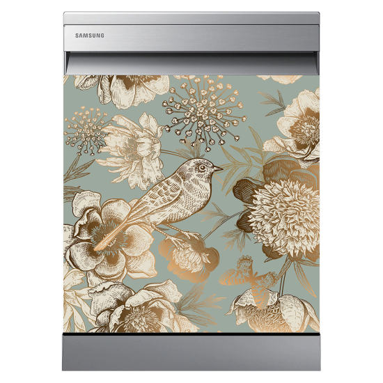 Vinilo Adhesivo para lavavajillas - Flores Pájaro