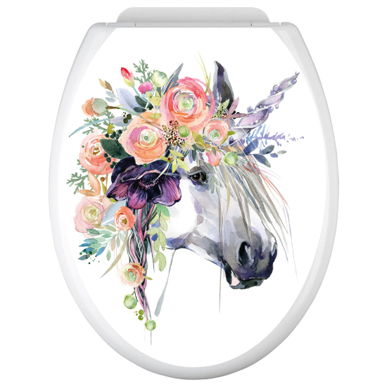 Vinilo Adhesivo para tapa WC - Unicornio Flores